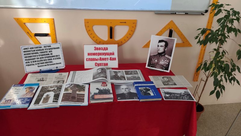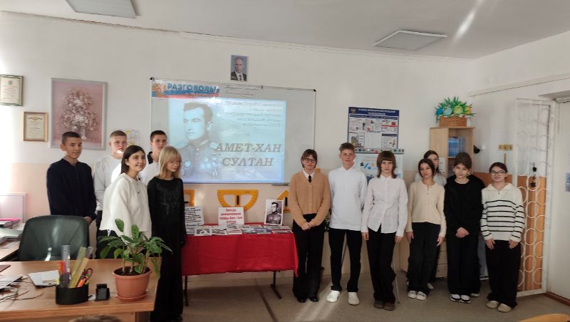 "Доблестный сын своего народа - Амет-Хан Султан". Под таким названием 20 октября в МБОУ «Новоселовская школа» в 8 классе совместно с библиотекарем Васиной А.В. прошло мероприятие. Час памяти был посвящён 105- летию со дня рождения Дважды Героя Советского Союза, летчика - испытателя Амет-Хана Султана. Мероприятие, которое включало в себя рассказ о жизненном и боевом пути Амет-Хана Султана, его заслугах перед Отечеством. Васиной А.В. была оформлена тематическая книжная выставка с подробной информацией о жизненном и боевом пути легендарного лётчика. Гордимся нашим земляком Амет-Ханом Султаном, его мужеством, силой, героизмом, доблестью и пусть память о нём будет жить вечно в наших сердцах.