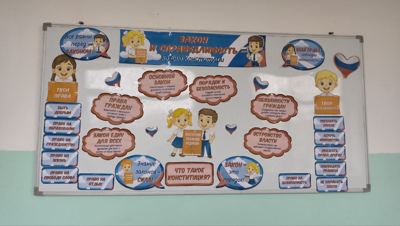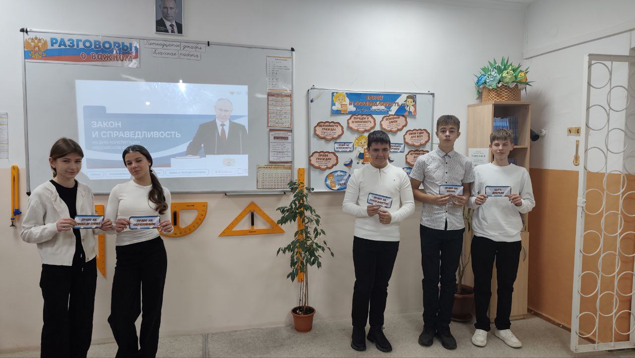 15 декабря в школе прошли уроки "Разговоры о важном", на тему: "Закон и справедливость", приуроченные ко Дню Конституции Российской Федерации
